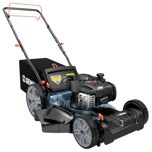 SENIX LSSG-M9 21-inch Gas Self-Propelled Lawn Mower - 140 cc 4-Cycle Briggs & Stratton Engine, Bagging, Mulching, and Side Discharge, 6-Position Lever Height Adjustment