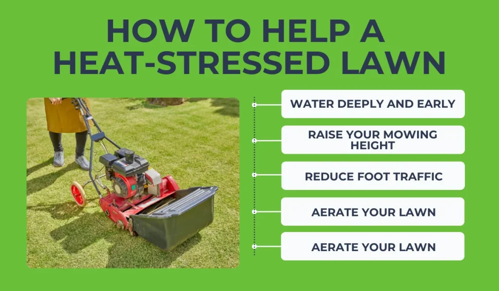 Mowing during heat stressworsens damage. Grass is already weak in hot weather. Mowing then can cause severe tip burns. Early morning or late evening are better times for cutting.