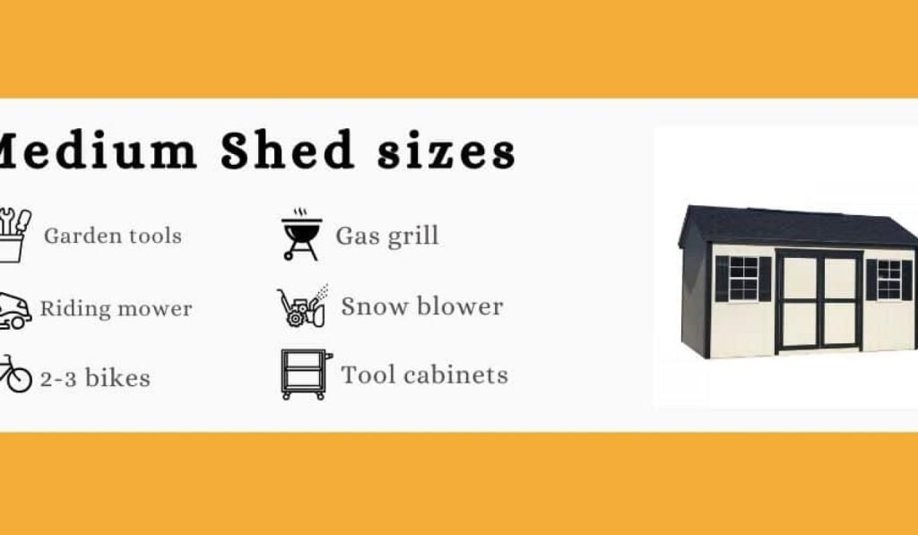 Medium sheds fit most standard riding mowers. Typical sizes range from 10×10 feet to 12×12 feet. These sheds allow room to walk around the mower. They often include space for fuel cans and maintenance tools. Medium sheds balance storage and workspace well.